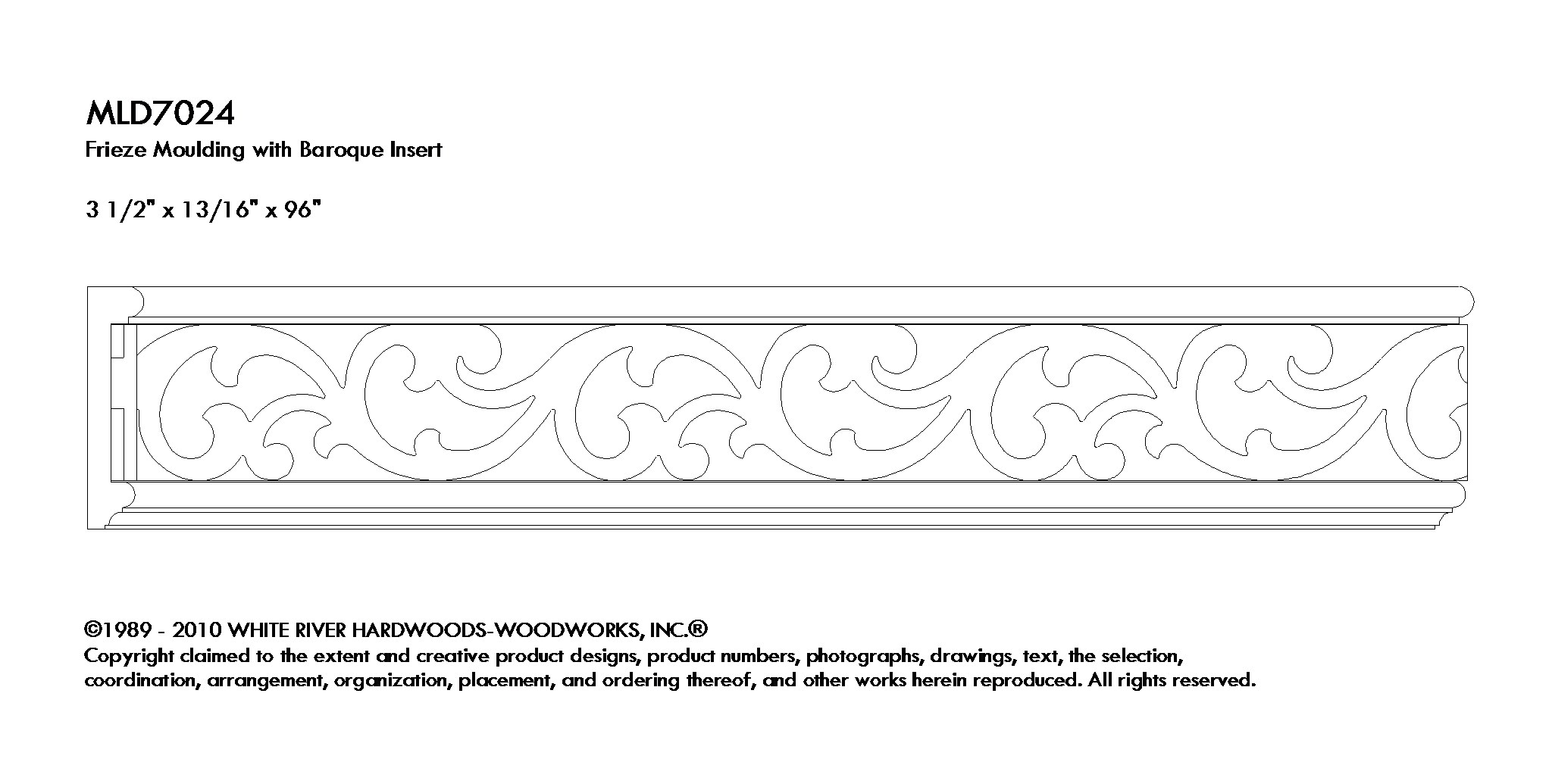 Panel Moulding With Baroque Insert, 3 1/2"w x 13/16"d x 8' length